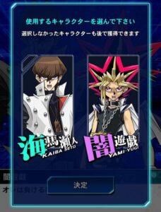 最初に武藤遊戯もしくは海馬瀬戸のどちらかを選択します。どちらを選んでも問題はないので自分の好きな方を選ぶのがおすすめです!