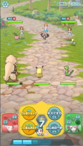 1チーム3人でチームを組みます。 それぞれのコマンドをタップし、技を繰り出したりポケモンを回復させたりします。