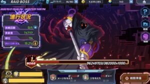 レイドボスでは期間限定で出現するイベントになります。全プレイヤーでボスに与えたダメージの累計ダメージが設定されたダメージ量に達成するとクリアとなり、レイドボスにダメージを与えたプレイヤー全員に撃破報酬が配られます。ボスを撃破した後は同じくまた設定されたダメージを与えてクリアする周回ゲームになりますが周回数が多くなるにつれてボスに与えなければいけないダメージもどんどん増えていきます。